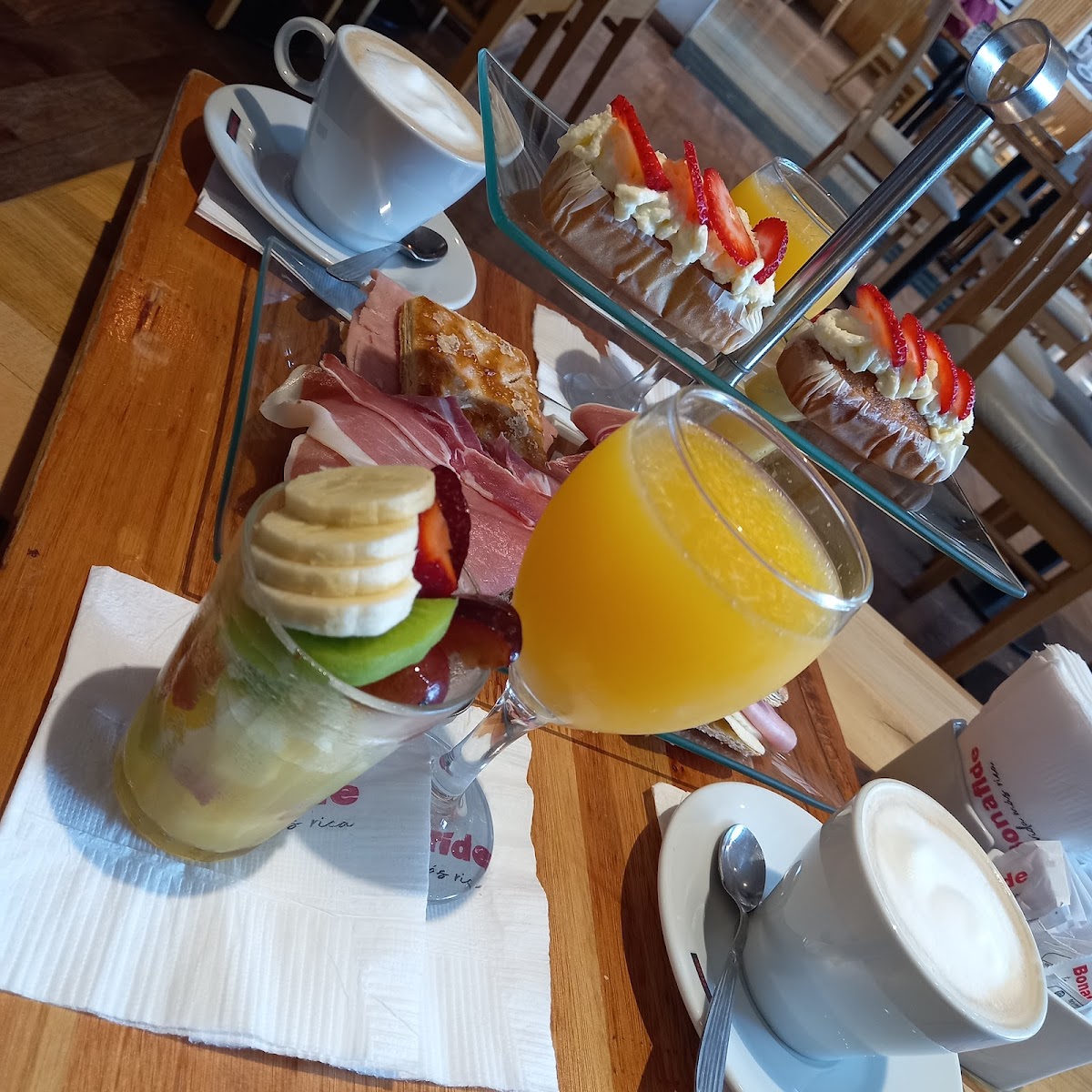 Ayer con una amiga pedimos desayuno y desayuno gourmet, muy completo, abundante. Café deli y muy bien tirado, acompañado de la mejor onda de la camarera de la terraza que no le preguntamos su nombre. Recomendado para desayunar rico y abundante. Bien de precio, creo que 14000.
